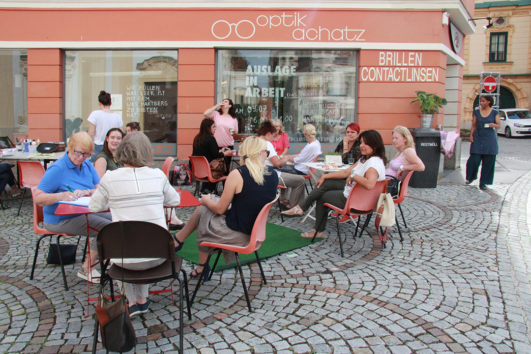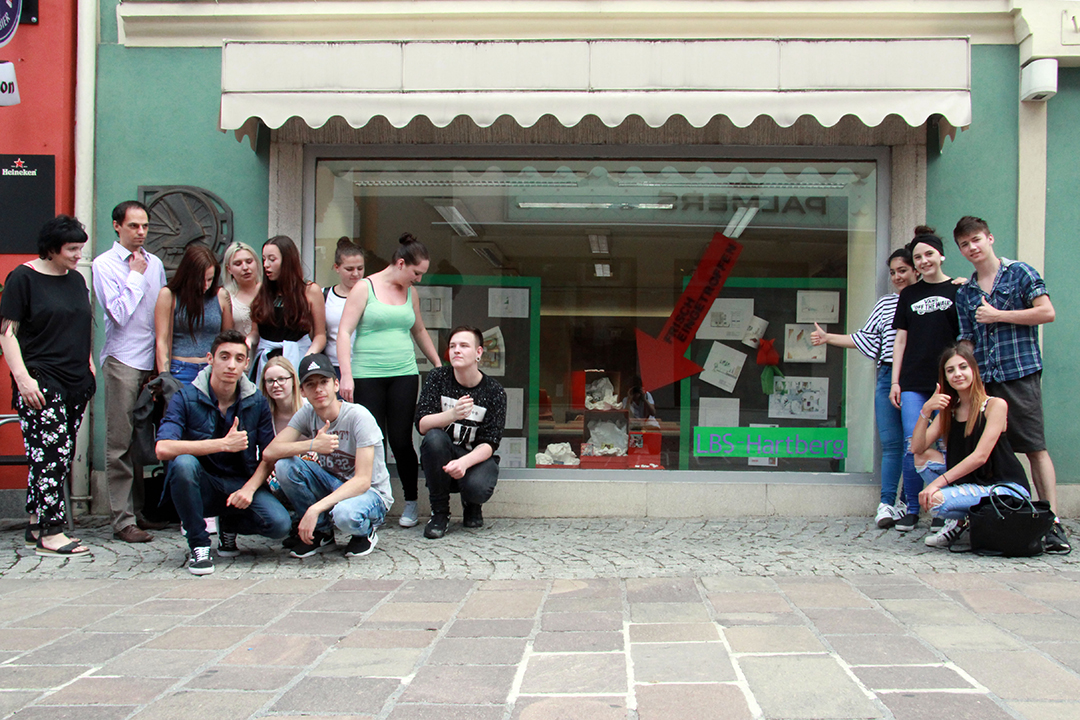 Hartberg, a city in crisis? The project deals with the feeling of shrinking in small towns, retail outflow and the revitalization of old town centers. Confronted with processes of change that have noticeably altered life in the city center, this project picks up where the theoretical examination of the development of rural areas often stops. It uses five empty business premises in the city center (provided free of charge by the owners) and fills them with the social and cultural commitment of the population. We give the empty spaces a rudimentary makeover so that they can be used in a meaningful and variable way. Through an increasing number of activities between June 19 and July 7, 2017, the empty spaces and thus the city center will be temporarily revitalized in a non-commercial way, new networks will be created and the population will enjoy their own potential. Meetings of cultural and social associations, consultation hours, artist rehearsals, school lessons and much more will be relocated to the city center. The activities and collected conversations are published in four small zines.